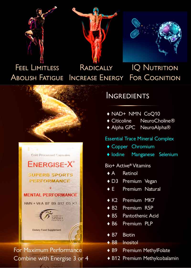 Energise-X Drink & Sublingual Powder, NAD+ NMN CoQ10 Vitamins - Increase Energy, Reduce Fatigue - Anti-Ageing