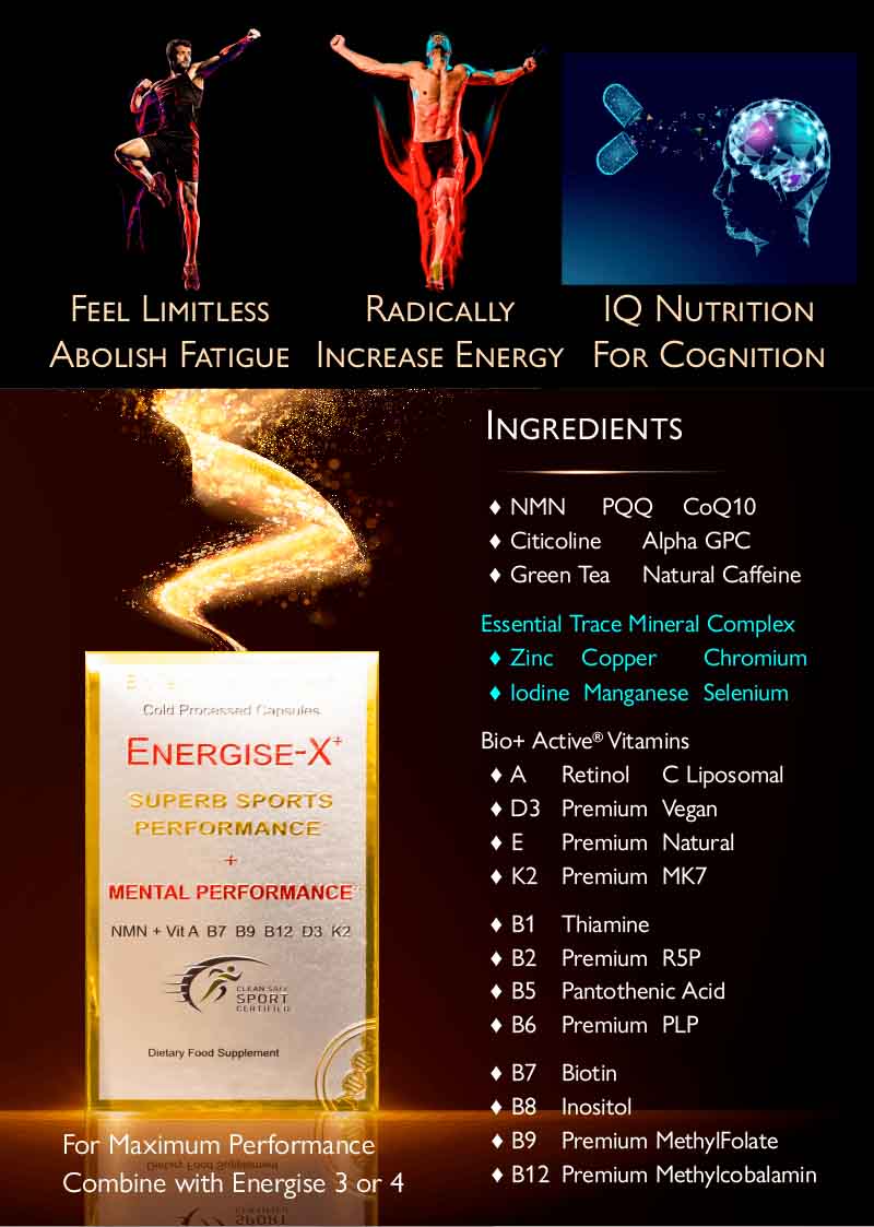 Energise-X NMN: Genius & Feel Limitless pills - Maximum Physical Energy & Mental Performance - All Vitamins & Minerals