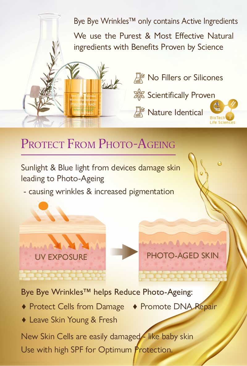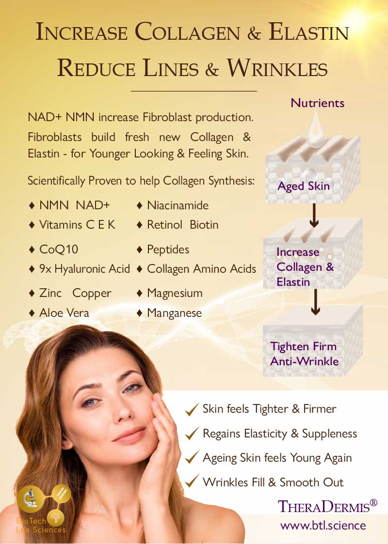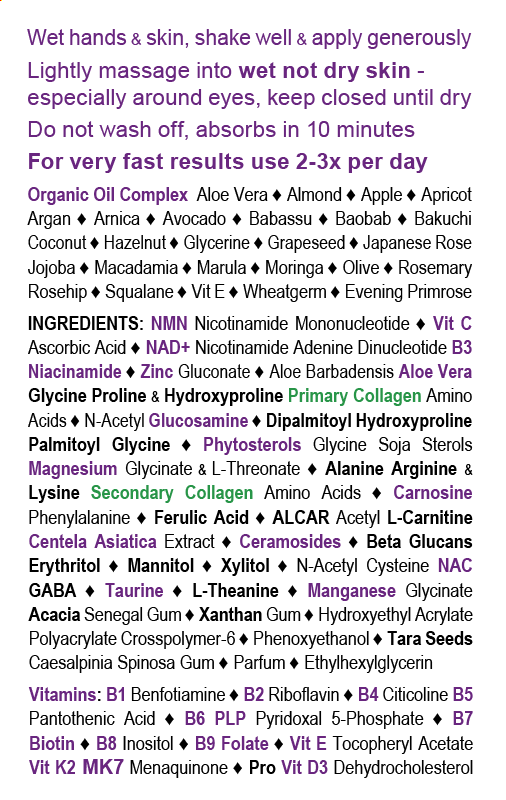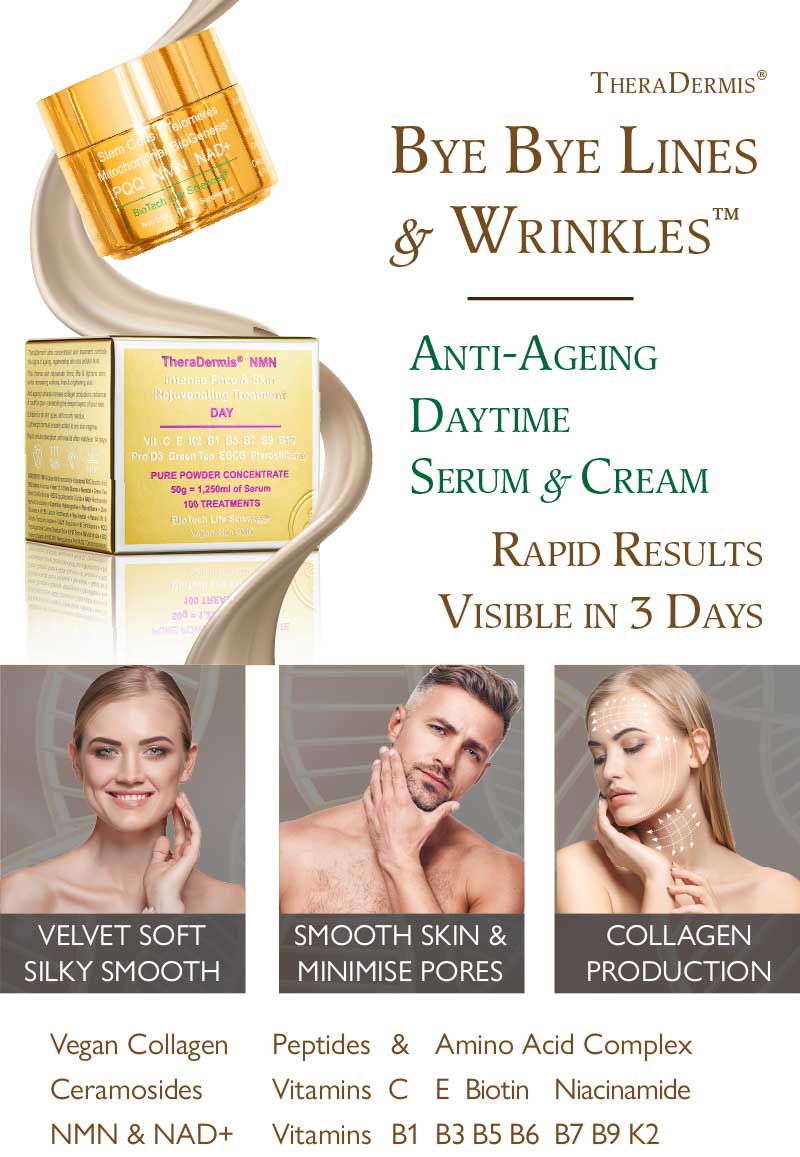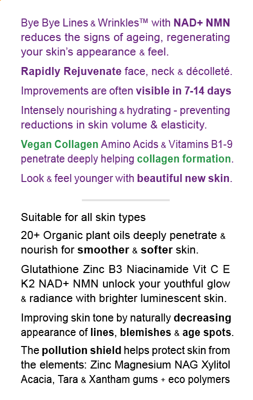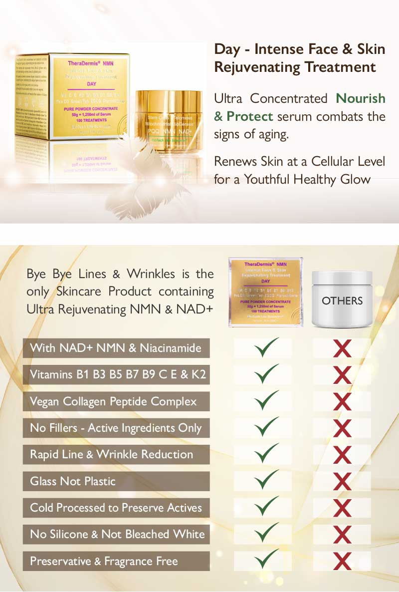 "Bye Bye Lines & Wrinkles" DAY - Face & Skin Rejuvenation - Increase Collagen, Minimise Pores, NAD+ NMN Vitamin C + Niacinamide