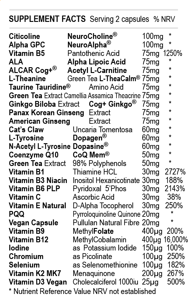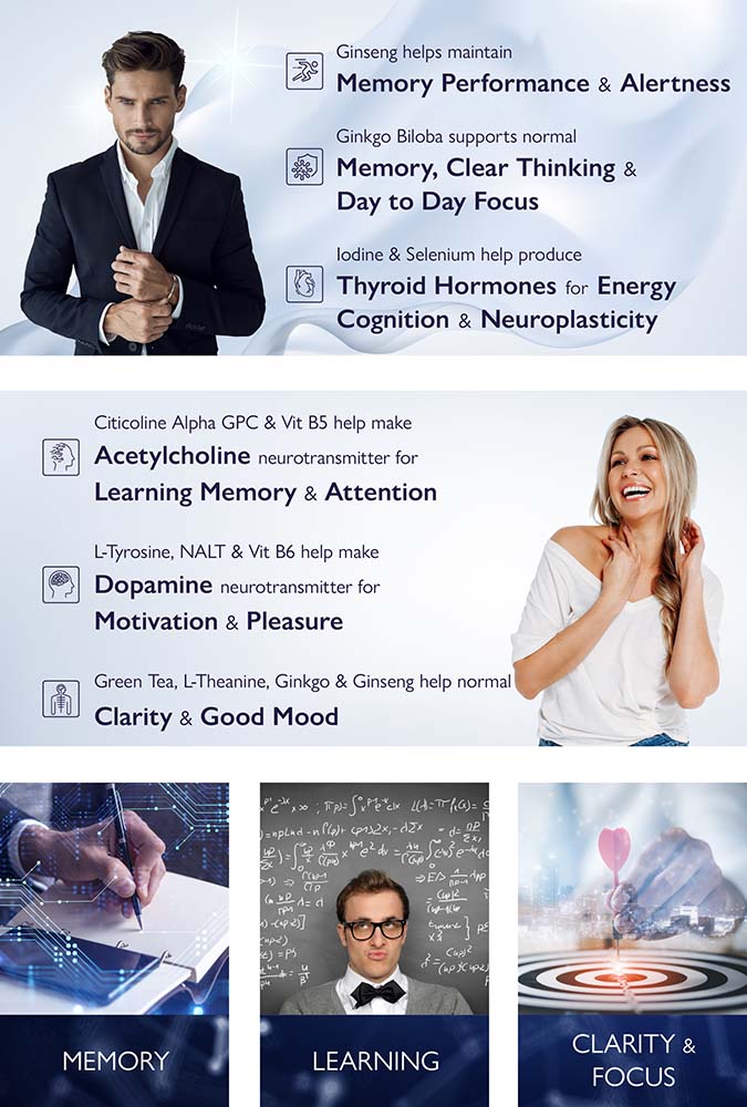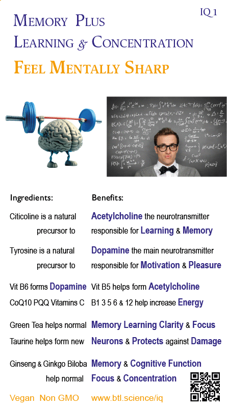 IQ1 Memory Plus Learning - Feel Sharp - Clarity & Concentration - Cognition & Study Aid